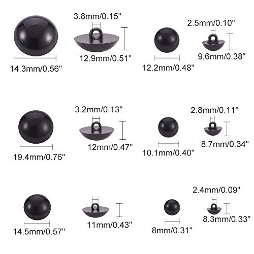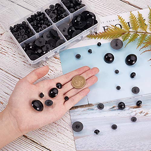 PH PandaHall 298 Pezzi 6 Dimensioni plastica Nera Occhi di Sicurezza Solidi Cucito Artigianato Occhi Bottoni per Coniglio Pasquale Orso Pupazzo Peluche Animale, 8,3 mm-12,9 mm
