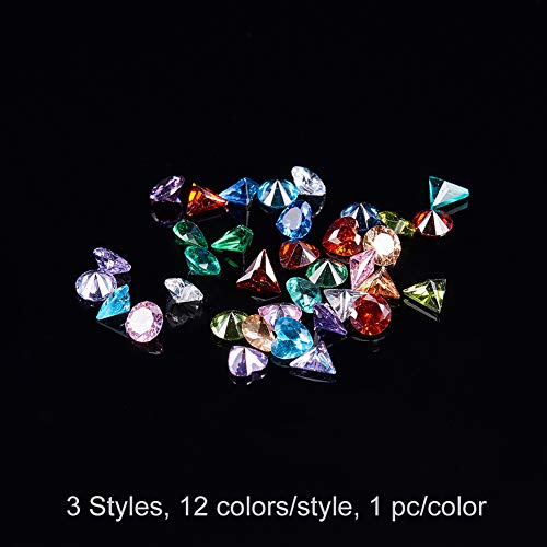 PandaHall 36 Pezzi 3 Forme Cubic Zirconia cabochon Diamante Cuore Triangolo sfaccettato zirconi per la Decorazione creazione di Gioielli