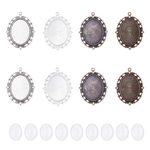 PandaHall 8 Pezzi impostazioni cabochon ovali tibetani 40x30mm 4 Colori 8 Pezzi Vassoio Pendente Lunetta Vuota con 8 Pezzi cabochon in Vetro Trasparente per cammeo Foto Collana creazione di Gioielli