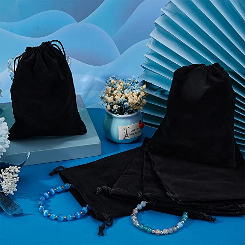 PH PandaHall 30 pezzi sacchetti di gioielli in velluto 12x15 cm sacchetti di coulisse regalo in tessuto di velluto nero per gioielli bracciali orologi di stoccaggio