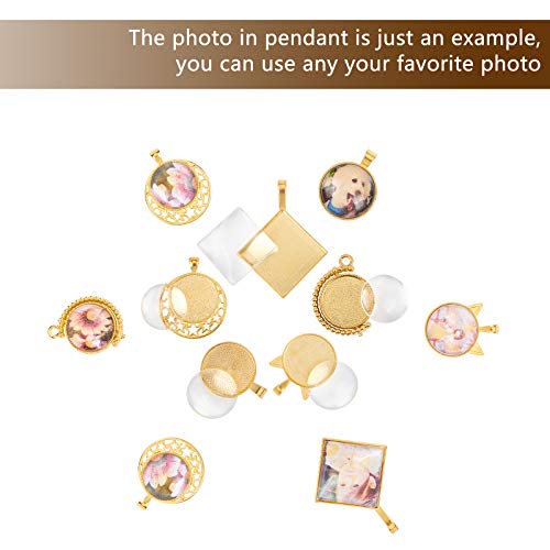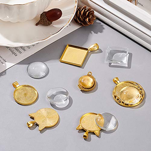 PH PandaHall 30 pezzi 5 stile Vassoi con ciondolo a castone dorato Ciondolo con cabochon in bianco con 30 pezzi di cabochon in vetro trasparente Piastrelle cabochon trasparenti per creazione