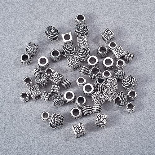 PandaHall 60 Pezzi 6 Stili Perle tibetane Europee Lega Grande Buco Perline barilotti distanziatori Argento Antico Europeo Charms per Collana Braccialetto creazione di Gioielli