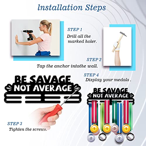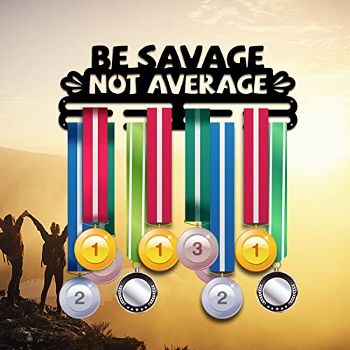 PH PandaHall Porta Medaglie Be Savage Not Average Espositore per Medaglie Appendiabiti Premi Nastro Cheer 3 Linee Sport Award Rack Montaggio A Parete Telaio in Ferro per Oltre 50 medaglie 40cm