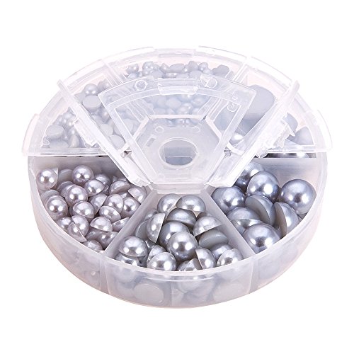 PH PandaHall 1 Scatola Perla Cabochon Mezzo Rotondo in ABS Acrilico per Decorativi Scrapbooking Arte, Colore Grigio, 4-12x2-6mm, Circa 690pcs/Scatola