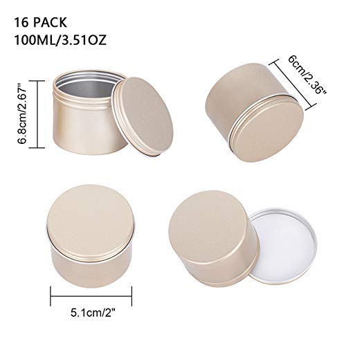 PH PandaHall 100 ml Scatole di alluminio Scatole con coperchio a vite rotonde 16 pezzi Scatole di metallo Contenitori di latta vuoti Lattine da viaggio per stoccaggio di candele, Bomboniere