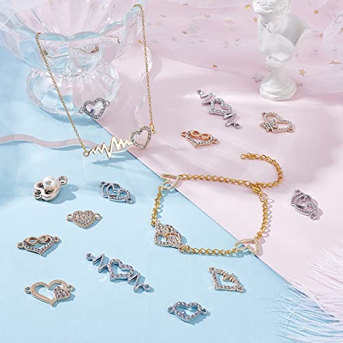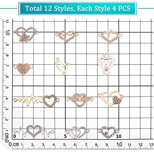 PandaHall 12 Stili Cuore Link, 48 pz Strass Connettori Pendenti e Ciondoli Dolce Amore Pendenti A Forma di Cuore Pendenti e Ciondoli per Orecchini Bracciali Collane Gioielli FAI DA TE Fare Natale
