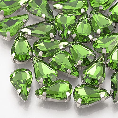 PandaHall 50 strass da cucire a goccia con strass e cristalli di vetro, con foro in platino, per abiti fai da te, vestiti, scarpe, borse, decorazioni (verde)