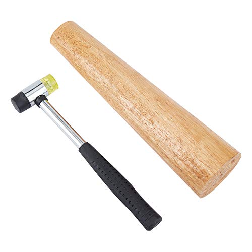 PH PandaHall Strumento di dimensionamento per bracciale con mandrino ovale in legno Manico in acciaio Installabile a due vie Martelli in gomma Strumento per gioielli fai da te