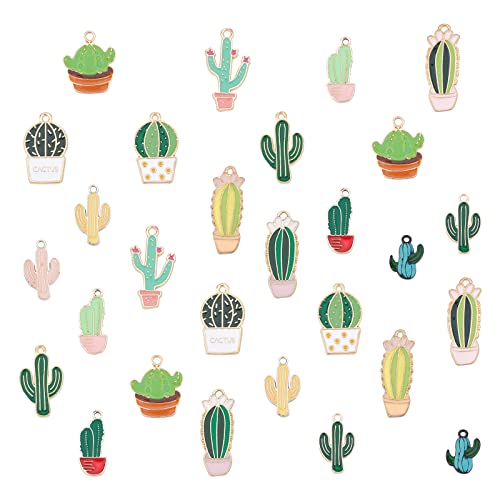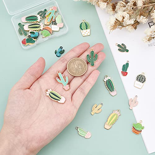 PH PandaHall 14 Styles Cactus Charms 28pcs Plant Pendenti Charms Pendenti In Lega di Smalto Oro Chiaro Perline Del Deserto Estivo per Collana Bracciale Orecchini Creazione di Gioielli Fai Da Te