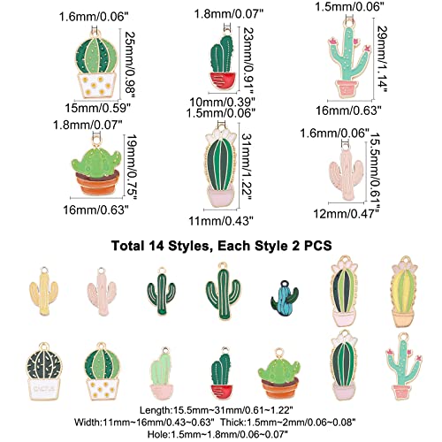 14 ciondolo cactus stili: vieni con ciondolo 28 pezzi, 2 pz/stili, in vari stili e colori, su 15~30 mm di lunghezza, 10~16 mm di larghezza, 1.5~2 mm di spessore, 1.5~1.8 mm nel foro, facile da infilare, ottima scelta per realizzare gioielli.