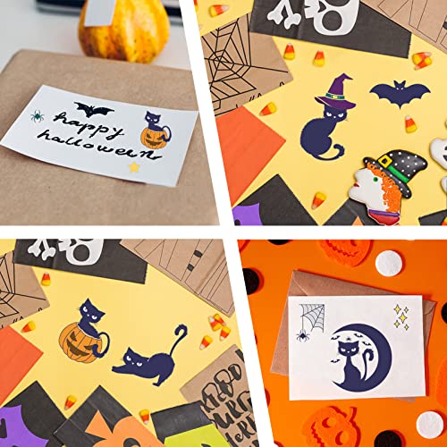 Timbro in silicone di Halloween: il retro di queste carte per francobolli trasparenti è stampato con una varietà di motivi, compresi i gatti, luna, stelle, ragni, ragnatele, pipistrelli, cappelli, zucche, Modelli di testo relativi ad Halloween, eccetera. Puoi progettare le tue carte di Halloween uniche o creare altri mestieri.