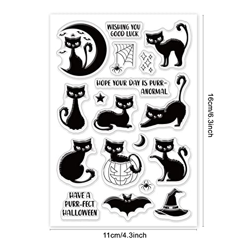PH PandaHall Timbri In Silicone Animale Gatto di Halloween Pipistrello Pipistrello Sigillo Trasparente Francobolli Vintage Trasparente per Creazione di Carte, Decorazione e Scrapbooking Fai Da Te