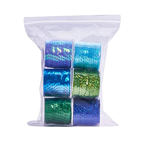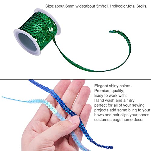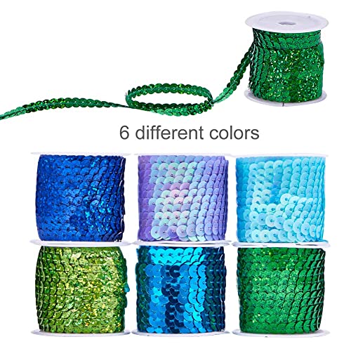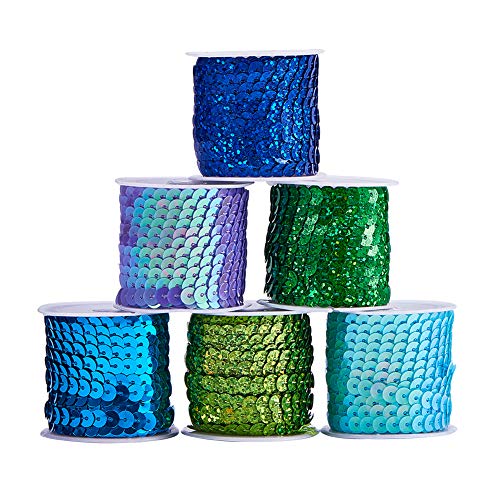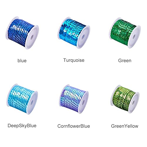 PH PandaHallElite 6mm (1/4 di Pollice) 6 Rotoli 6 Colori Lustrini Paillettes Piatte Trim Paillette Spool String per Dress Embellish Headband (5m / Roll, Blue Series)