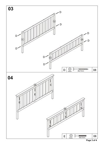 Pandamoto Telaio per letto matrimoniale in legno di pino massello, da 137 cm, bianco, Legno, White, Double bed002