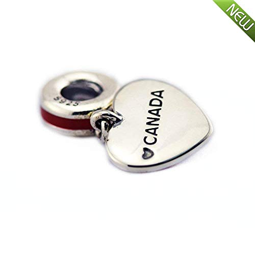 PANDOCCI 2016 Autunno Canada Cuore Bandiera, Smalto Rosso e Bianco Perline Adatto per Gioielli bracciali Pandora Charms