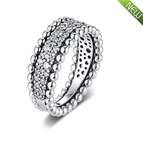 PANDOCCI 2020 Regalo di San Valentino Anello con Fascia pavé di Perline per Donna Argento 925 Fai da Te Adatto per bracciali Pandora Originali Gioielli di Moda con ciondoli (52#)