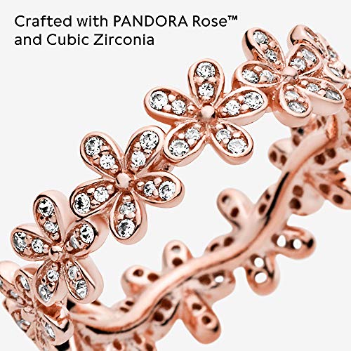 PANDORA Garden Anello con margherite placcato in oro rosa 14 k con zirconi cubici trasparenti, 48