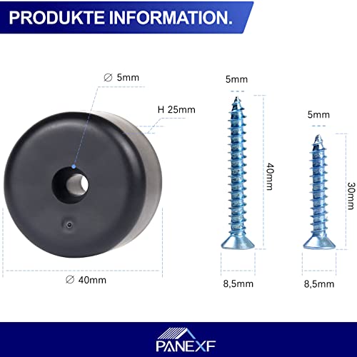 Panef Piedini per Mobili Rotondi 12 PZ Gambe per Mobili Nero Ø 40 x H 25 mm Piedi dei Mobili Plastica Gambe Tavolo con 24 PZ vite