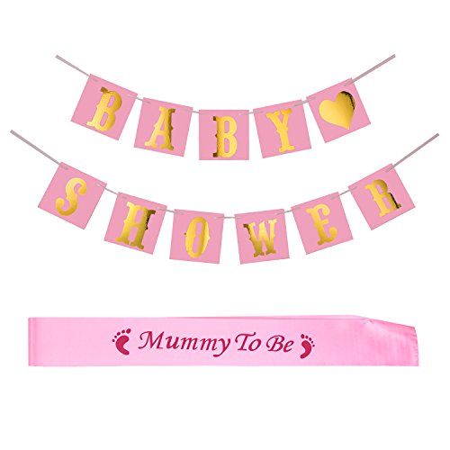Pangda Bambini Doccia Bandiera Bunting e Mummy To Be Sash per Baby Shower Party (Rosa)