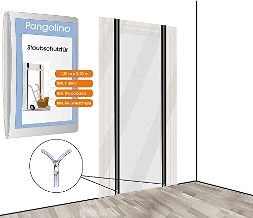 Pangolino Pellicola antipolvere per porta di costruzione con chiusura lampo, pellicola in polietilene, 1,20 x 2,20 m, con nastro biadesivo, variante con ganci, pellicola di costruzione [porta della