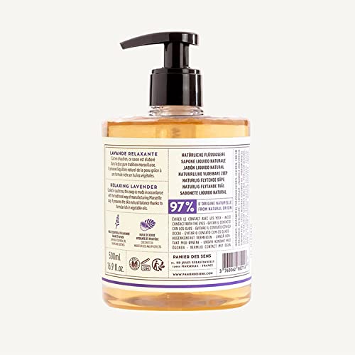 Panier des Sens - Sapone Liquido Mani - Sapone Mani alla Lavanda - Ingrediente Attivo Olio di Cocco - Sapone di Marsiglia Made in France - Sapone Idratante Naturale con 97% Ingredienti Naturali, 500ml