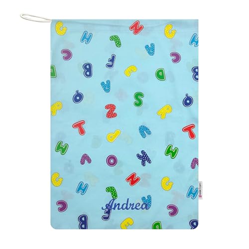 Panini Tessuti Sacchetto Asilo Con Nome Ricamato per bambino e bambina porta indumenti cambio asilo sacca nido 100% Cotone 46x60 cm