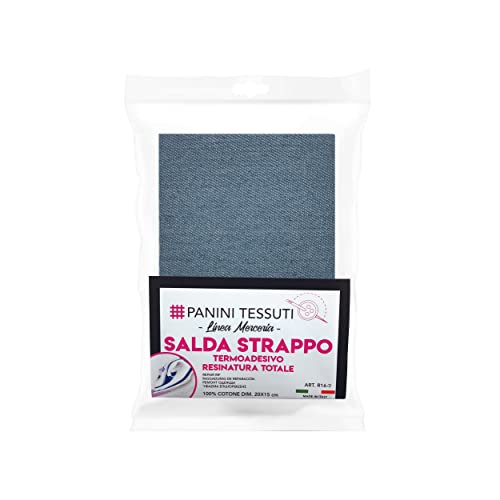 Panini Tessuti - Salda Strappi Termoadesivi Resinatura Totale - 100% Cotone - Dimesione 20x15 cm - Applicazioni - Merceria - Patch - Applicazioni - Toppe (Jeans Medio 61 nuovo)