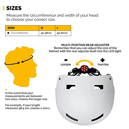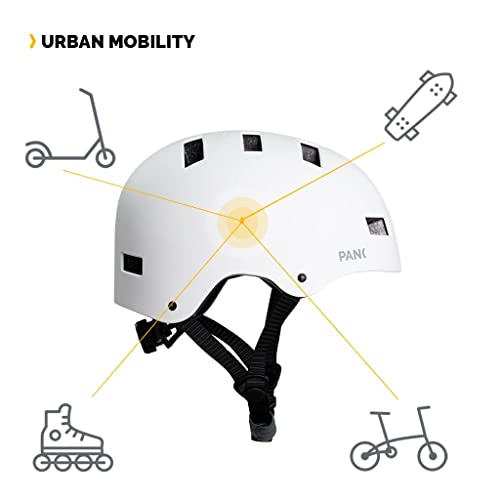 Pank Casco Monopattino Elettrico - Premium Caschi MTB Casco Arrampicata Casco Bici - Skateboard Casco Aon Luce Posteriore LED Imbottitura Morbida Uomo Donna Adulti Urban Bianco L (59-62 cm)