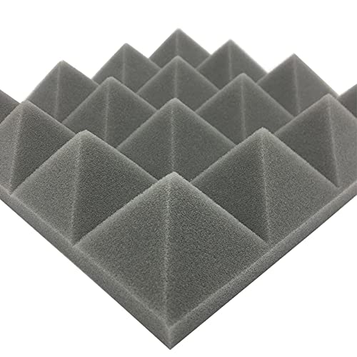 12 pannelli di isolamento acustico in schiuma fonoassorbente con piramidi, accessori per il trattamento del suono, per progetti fai da te in studio, da parete, 25 x 25 x 5 cm, Grigio