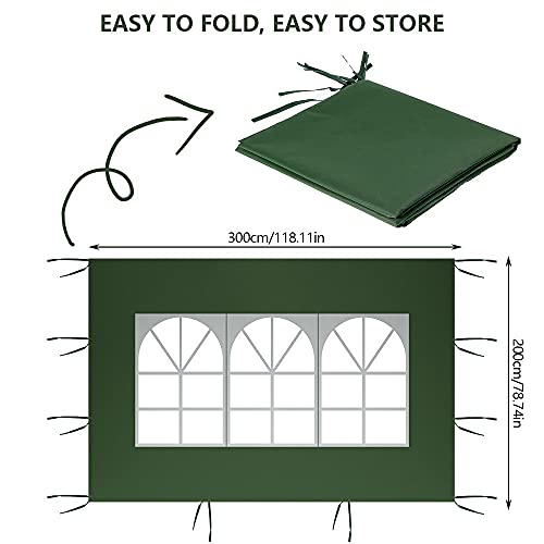 3 m x 2 m pannelli laterali per gazebo impermeabile, pannello laterale Gazebo in tessuto Oxford 210D pannello laterale di ricambio per gazebo da giardino all'aperto festa (verde, finestra romana)