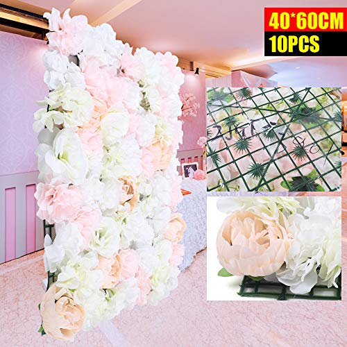 10 pannelli da parete con fiori bianchi, 61 x 40,6 cm, decorazione da parete con fiori di seta, per matrimoni, matrimoni, feste di nascita, baby shower, eventi, ecc