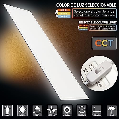 Pannello LED 120x30cm 48W CCT, con Selettore di Colore (Bianco Caldo, Neutro e Freddo), 5000 lumen, Driver Incluso