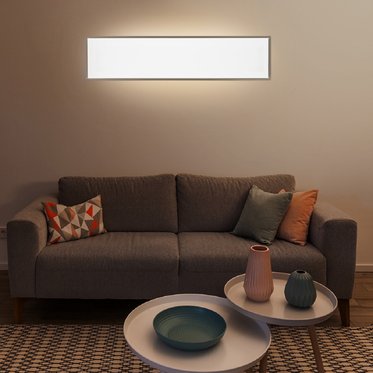 Pannello LED forma rettangolare, dimensione 30x120 cornice bianca;