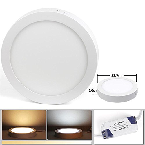 Pannello LED 18W Bianco Caldo Dimmerabili Plafoniere Lampada Plafoniera Installazione Diretta Superficie Rotonda [Classe energetica A ++]