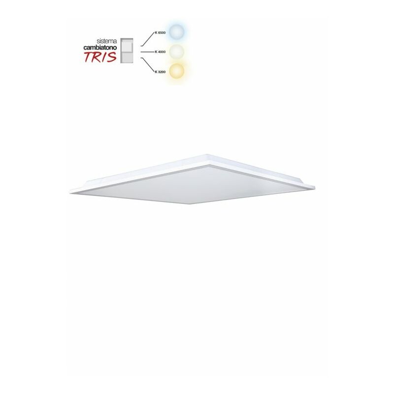 Dimensioni 600 × 600 × 15 mm Wattaggio 40W Lumen 3600 Lumen Temperatura K6500 + K4000 + K3200 Fattore di potenza PF 0.9 Grado di Protezione IP20 Autonomia 50.000 ore Angolo 120° Indice resa cromatica CRI>80 Cornice Bianca