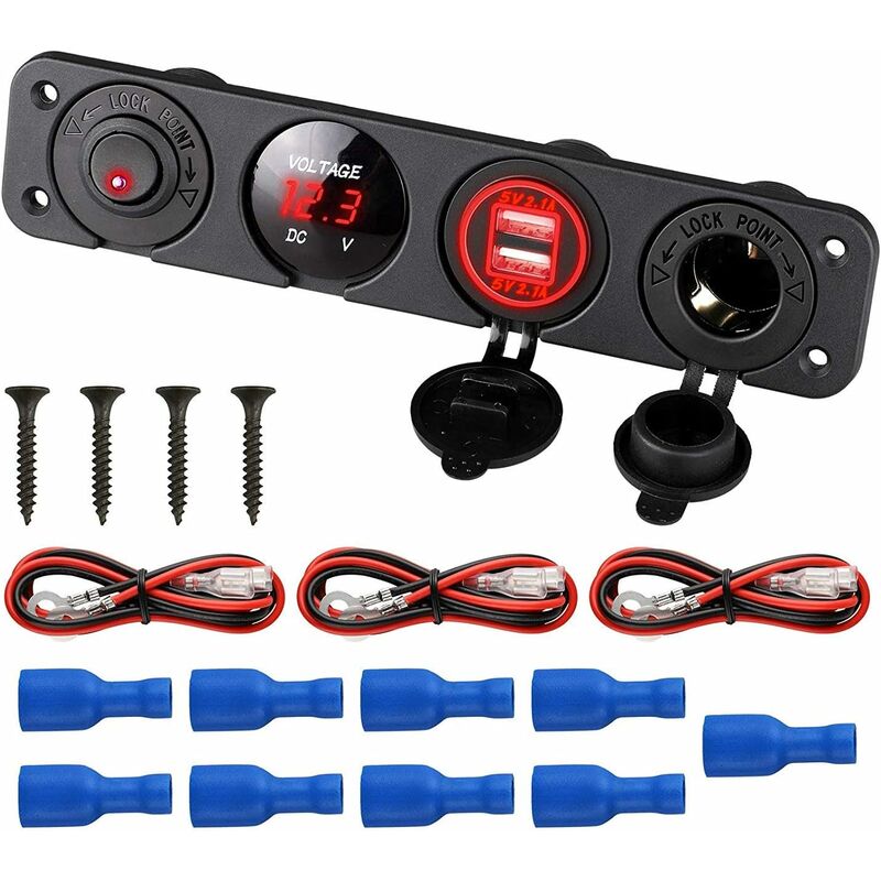 Ciabatta di ricarica 4 in 1 - Questa presa multipla da 12V è dotata di una presa USB da 12V + un voltmetro con display digitale a LED e una presa accendisigari da 12V + un interruttore a bilanciere a LED. Comodo per l'installazione e il funzionamento. Rimovibile anche per sostituire altre prese di ricarica o qualunque cosa si adatti. Presa di ricarica USB doppia impermeabile: questa presa per auto USB da 12 V ha due porte di ricarica USB integrate, due porte di uscita: 5 V/2,1 A e 2,1 A (4,2 A totali), riconosce automaticamente i tuoi dispositivi e carica contemporaneamente 2 dispositivi a velocità ottimale! Voltmetro a LED in tempo reale con - Con l'ampio display del voltmetro digitale che mostra la tensione da 5 a 48 V, puoi monitorare lo stato della batteria dell'auto o della barca quando la tensione è normale. Interruttore a bilanciere LED On Off - Progettato con stile basculante, facile da usare. Lunga durata fino a 10000 cicli. La presa accendisigari aggiuntiva è portatile per