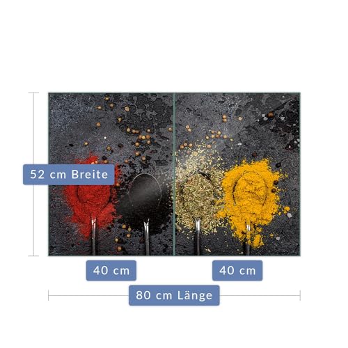 Pannello di copertura per piano cottura in vetroceramica, 2 pezzi, 80 x 52 cm, multicolore, paraspruzzi in vetro, protezione per piano di sicurezza, tagliere in vetro, 2 x 40 x 52 cm