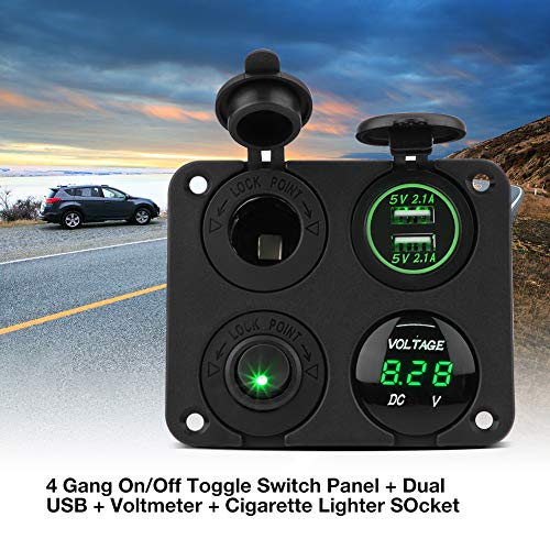 Pannello interruttori a levetta Impermeabile 4 Gang Interruttori ON/OFF Caricatore doppio USB Presa accendisigari Voltmetro DC 12V/24V(Luce verde)