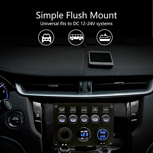 12V Pannello Interruttori Marine Barca Interruttore a levetta 2 Caricatore USB Accendisigari Voltmetro LED Digitale impermeabile (Blu)