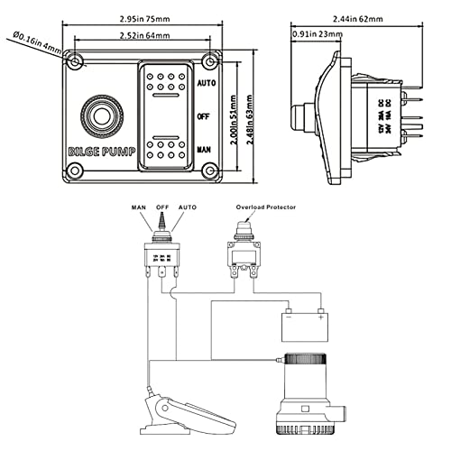 Pannello Interruttori Pompa di Sentina a 3 Vie (Spegnimento Automatico Manuale), con Indicatore LED, Controllo Pompa di Sentina CC 12V/24V, Interruttore Integrato 15a, Durevole (nero)
