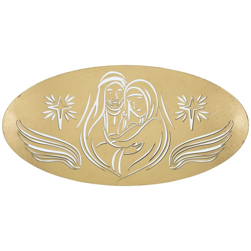 Pannello Nativity Oro 120x2x60 cm in Ferro MDF e Specchio Oro Pannello decorativo ovale 3D in metallo dorato con specchio. Il particolare intaglio crea il disegno della natività. Un tocco raffinato per ogni ambiente.