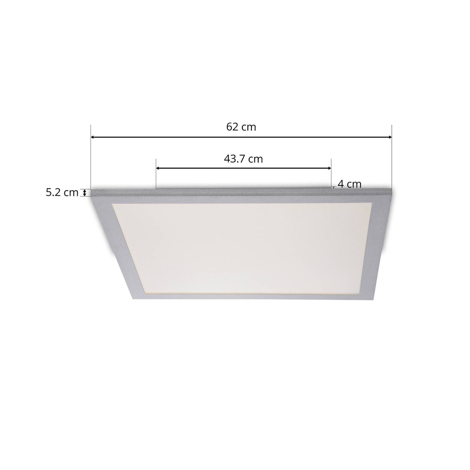Pannello LED Dinvoris classico di forma quadrata con lato di 62 cm, colore di luce preimpostabile Dinvoris ha una superficie illuminata bianca e una cornice argentata, che conferisce un aspetto discreto e senza tempo. Il pannello LED può quindi essere utilizzato in diversi modi, sia a livello commerciale che privato. Un interruttore DIP sul retro consente inoltre di selezionare il colore di luce prima dell'installazione, con tre diverse temperature di luce disponibili, dall'accogliente bianco caldo al bianco neutro universale, ideale per il lavoro, fino al bianco freddo della luce diurna. Inoltre, un dimmer a triac installato esternamente consente di regolare con precisione la luminosità in base alle esigenze.