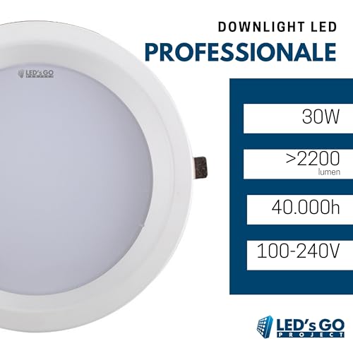 FIDUCIA: Illumina i tuoi locali in modo efficiente ed elegante con il Downlight LED Circolare Incasso 30W di Led's Go Project. Azienda spagnola con oltre 10 anni di esperienza nella produzione di illuminazione LED, i nostri prodotti sono della massima qualità e offriamo 5 anni di garanzia su tutte le nostre lampade.