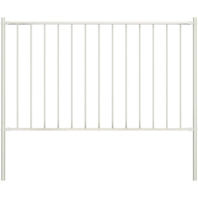 Questa recinzione da giardino con pali ha un design semplice ma pratico e si adatta a qualsiasi giardino. Questi pannelli di recinzione con pali, realizzati in resistente acciaio verniciato a polvere, costituiranno una struttura divisoria robusta e duratura per il vostro giardino. Il pannello, resistente agli agenti atmosferici e alla corrosione, risulta ideale per permettere di tenere lontani ospiti indesiderati dalla vostra propriet¨¤. La recinzione da giardino pu¨° essere facilmente montata nel terreno grazie ai materiali di montaggio in dotazione. La consegna include 1 pannello di recinzione, 2 pali e gli elementi di montaggio Colore: Bianco Materiale: Acciaio verniciato a polvere Dimensioni complessive: 170 x 150 cm (L x A) Dimensioni pannello: 170 x 100 cm (L x A) Resistente agli agenti atmosferici La consegna include 1 pannello di recinzione, 2 pali e gli elementi di montaggio
