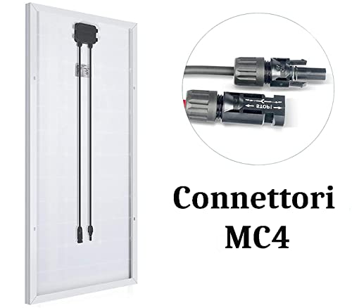 Pannello solare, Potenza: 150W, Lunghezza cavo connettori: 80 cm circa, Dimensioni: h120 x l67 x s3 cm circa