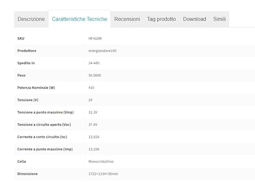 Le prestazioni sono eccellenti, si tratta di moduli con celle fotovoltaiche in silicio monocristallino ad alta efficienza di classe "A", affidabili e resistenti.