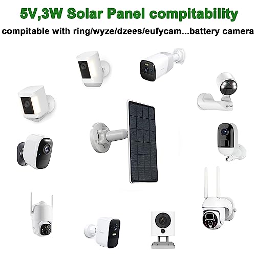 Pannello solare da 3 W per telecamera di sicurezza con micorUSB/Type-C/DC3513 Tre tipi di connettori, impermeabile IP65, cavo di ricarica da 3 m, compatibile con R'eolink argus3/3pro di più