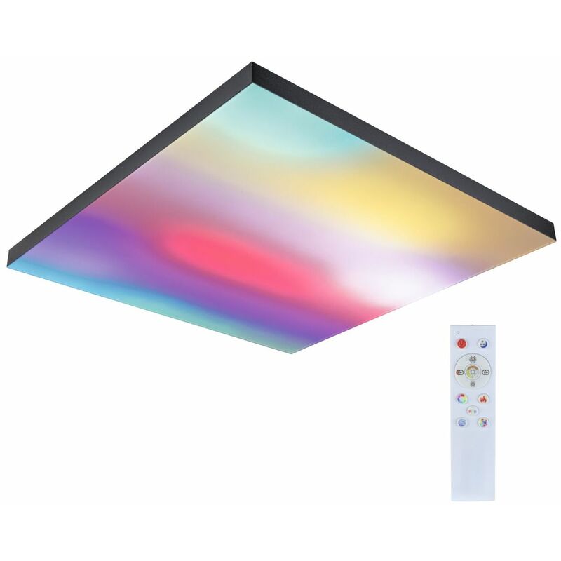 Pannello LED Velora Rainbow - Eckig 595x595mm 3520lm RGBW Nero Eccellente illuminazione della stanza e magia di colore puro Spettacolari effetti di illuminazione nel soggiorno - il pannello LED Velora Rainbow in nero di dimensioni 595x595mm collega l'eccellente illuminazione dello spazio con la magia di colore puro, perché le migliori proprietà luminose con effetti dinamici sono stati combinati nuovamente. La temperatura del colore è continuamente regolabile tramite telecomando di 3000 K caldo bianco a 6500 k luce bianca di luce diurna e supporta il bioritmo naturale. Il pannello LED stupisce anche con 16 animazioni preimpostate e controllo dinamico del colore, che sono possibili solo con luce piatta. Ogni scena luminosa può essere regolata a velocità o congelata come immagine fissa. Questo crea una superficie di illuminazione unica e individuale. Il pannello LED Velora Rainbow è infinitamente dimmerabile e ha una funzione di luce notturna integrata. La superficie della luce