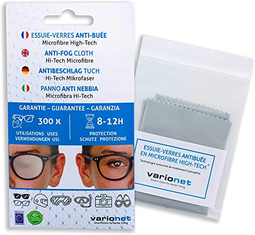 Panno Anti-Appannamento VARIONET | 15 X 18 cm Efficace 12 ore e per 300 Utilizzi | Panno in Microfibra di Camoscio