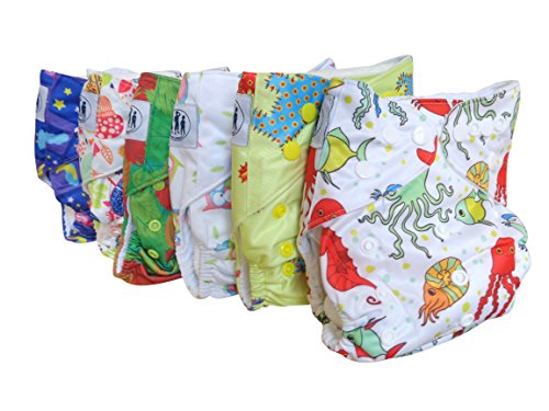 Set da 6 pannolini di stoffa unisex Three Little Imps con disegni (dotati di 2 inserti ciascuno)